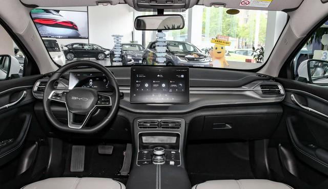 进入车内,比亚迪驱逐舰05在内饰的风格上简约而不失科技感,三幅式方向盘搭配银色镀铬饰条,精致感十足。挡把区布局规整,旋钮换挡旁各类实体按键排列有序,空调出风口周围的镀铬装饰也恰到好处,为内饰增添了几分精致。科技配置方面,液晶仪表和12.8英寸悬浮式中控屏,显示内容丰富,操作流畅,还能随心横竖屏切换,实用性拉满。中控台和车门内饰板上方的软性材质包裹,也尽显做工的用心。